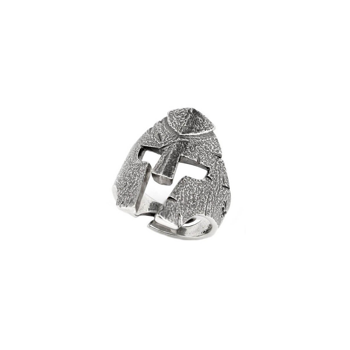 Man ring in the shape of a warrior helmet in 925 silver hypoallergenic aged and burnished - - 8000100007383 ©