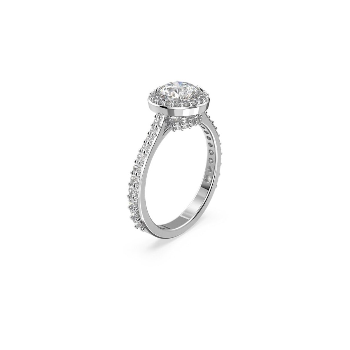 Swarovski women's cocktail ring from the Constella collection. Made with a central stone with a round cut and embellished with a crown of white crystal pavè also present on the ring band for a suggestive effect.