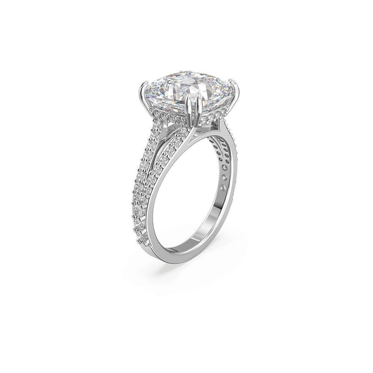 Women's cocktail ring, Swarovski from the Constella collection. Made with a central square cut stone on a two-pronged frame and enhanced by a gallery of pavé also present on the double rhodium-plated band for a suggestive effect.