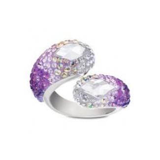Rhodium ring Trema with Clear Crystal, nuance blue and purple interprets the tendency for important jewels with its Swarovski Clear crystals