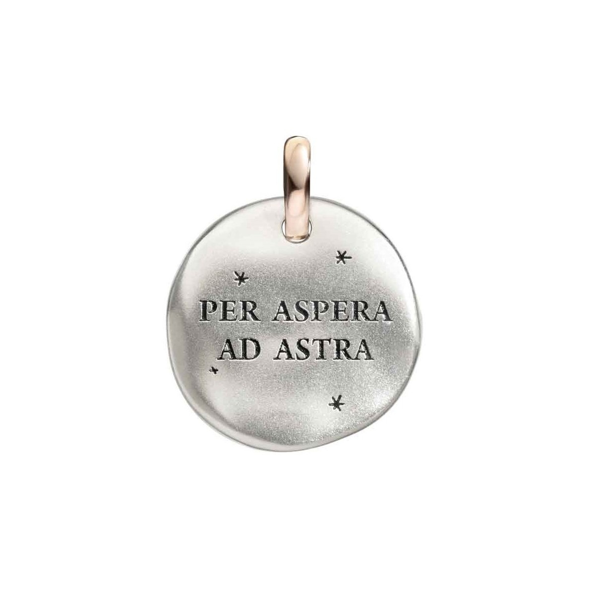 Pendant 925 silver bracelet or necklace, 9k rose gold hook and black amalgam lettering. "Per aspera ad astra". No one has ever really won without risking losing everything.