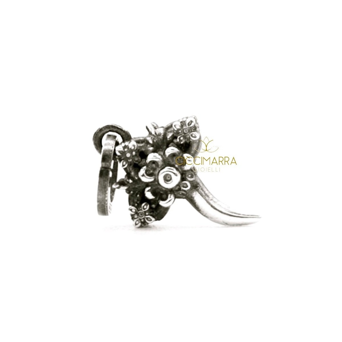 Lucky Cornetto pendant made in burnished 925 silver, medium size with logoed ring