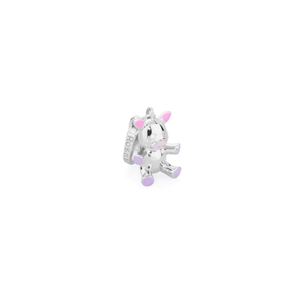 Piglet charm in silver with Zircons and white enamelled details