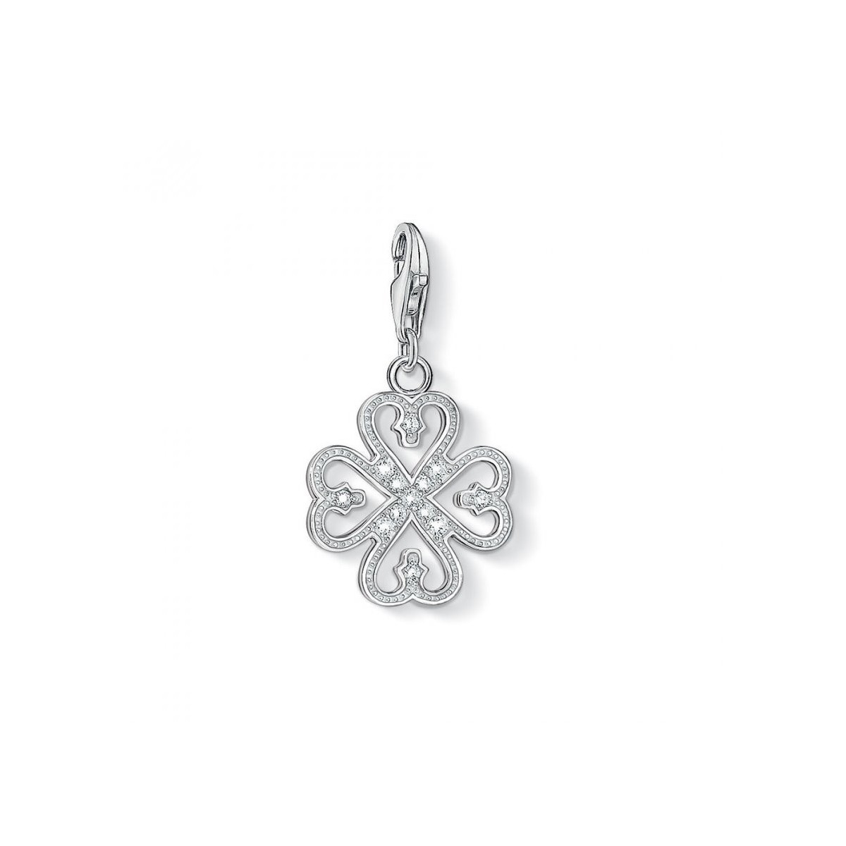 Four-leaf clover pendant sterling silver 925 Club line and pave cubic zirconia, synthetic