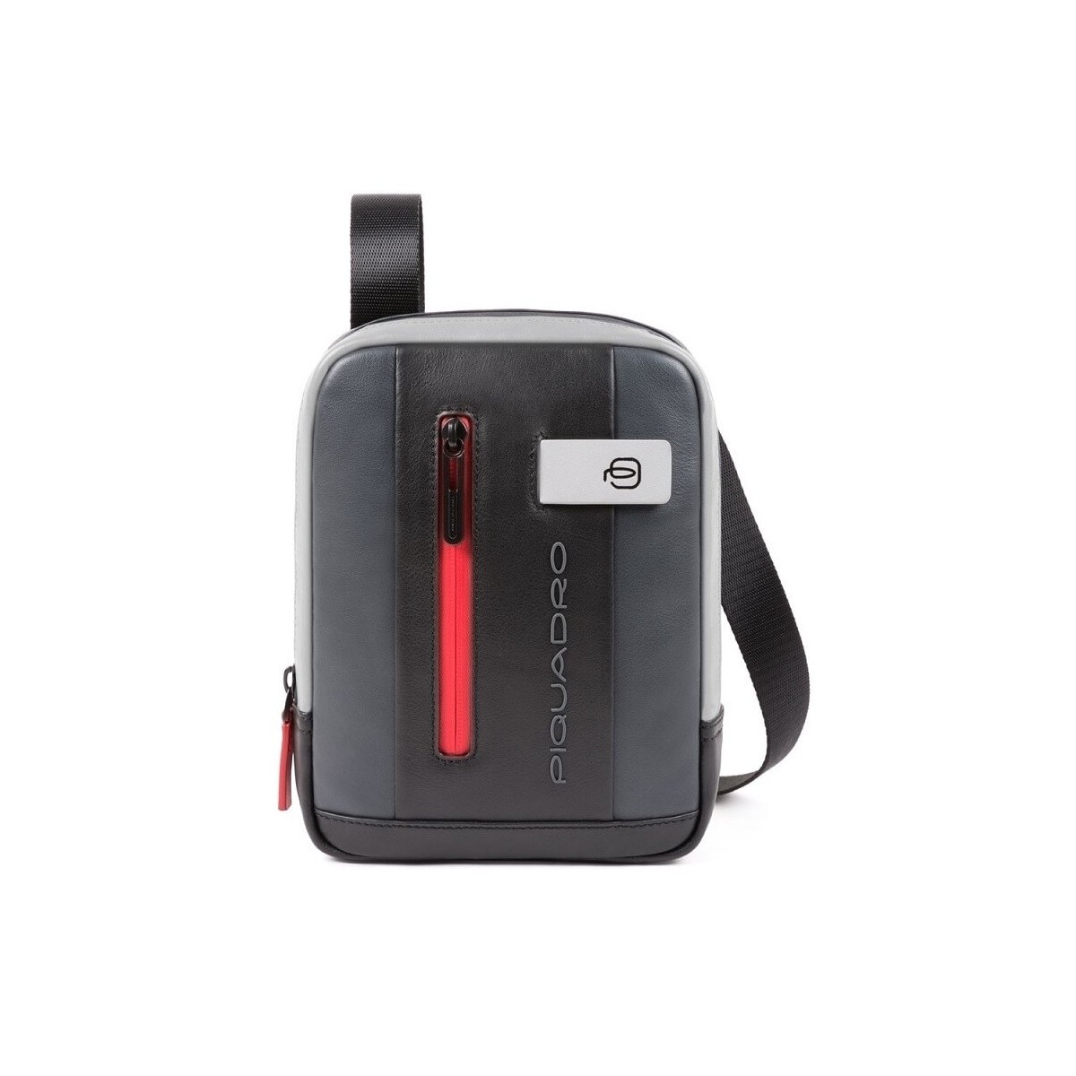 PIQUADRO Men's small size leather bag from the Urban collection in gray and black.