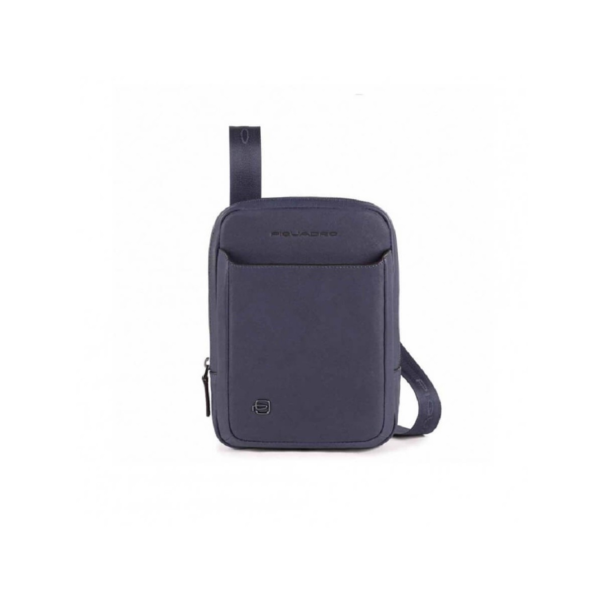 Features Piquadro bag in blue leather:
