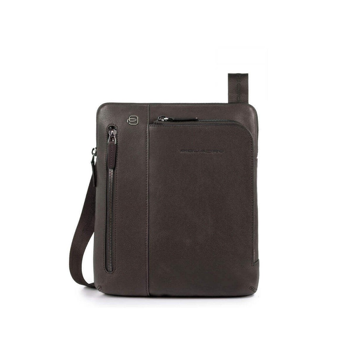 Men's bag from the Black Square series made entirely of genuine Italian leather in an intense dark brown. The bag has a double front pocket and a back pocket with zip closure, adjustable stitched shoulder strap and a fixed internal organization with Ipad holder, key holder and pen holder to have everything always at hand with the Piquadro style.