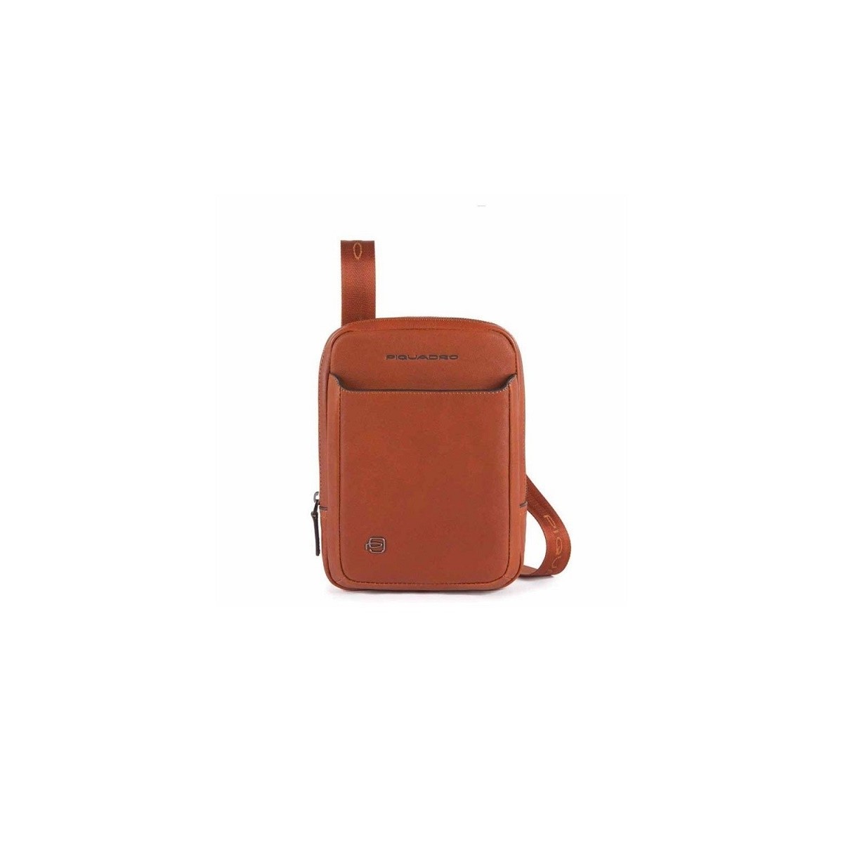 Piquadro men's shoulder bag from the Black Square collection made of genuine cowhide with a thin grain and soft to the touch, tan color with small metal inserts. The bag features a fixed internal organization with mini Ipad holder, mobile phone holder and pen holder. Zip closure and adjustable fabric shoulder strap.
