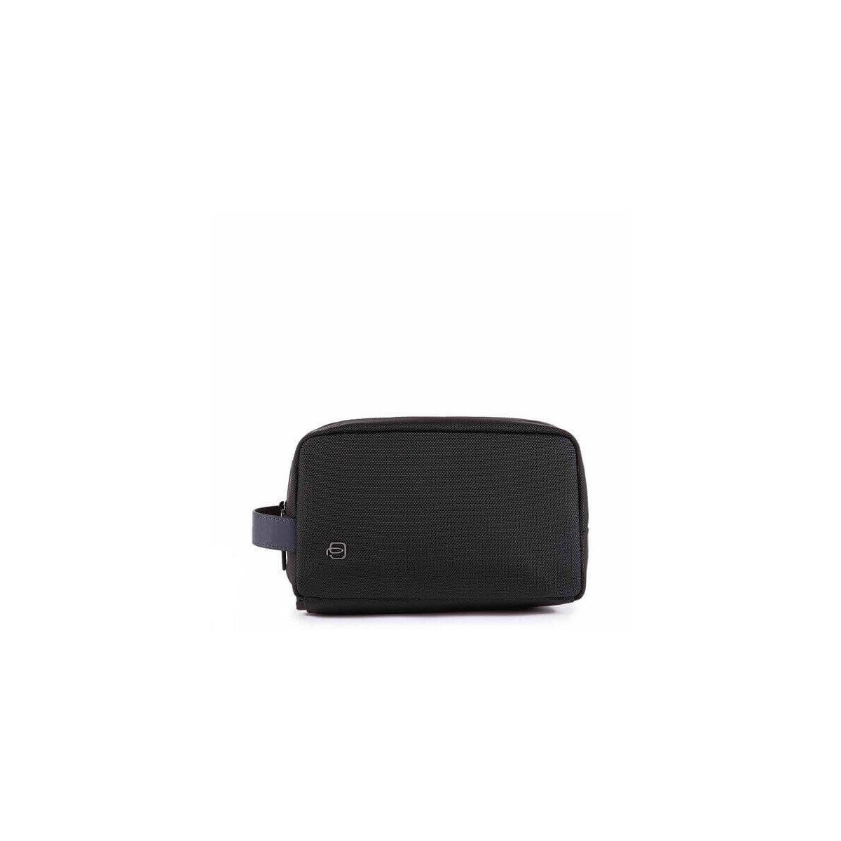 Clutch bag for man cables, Piquadro, from the Stationery collection, with fixed internal organization and umbrella pocket, made of fabric with blue leather cuff.