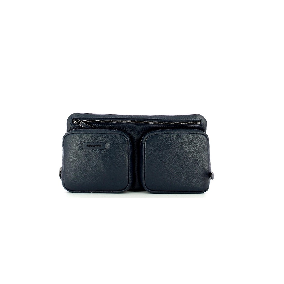 Piquadro men's bum bag from the Modus Spacial collection made of blue cowhide with a fine grain and soft to the touch. Bag characterized by a compartment with fixed internal organization and double front pocket for objects with zip closure. Adjustable cordura belt with buckle. Ultra light article, created for an informal and dynamic style.