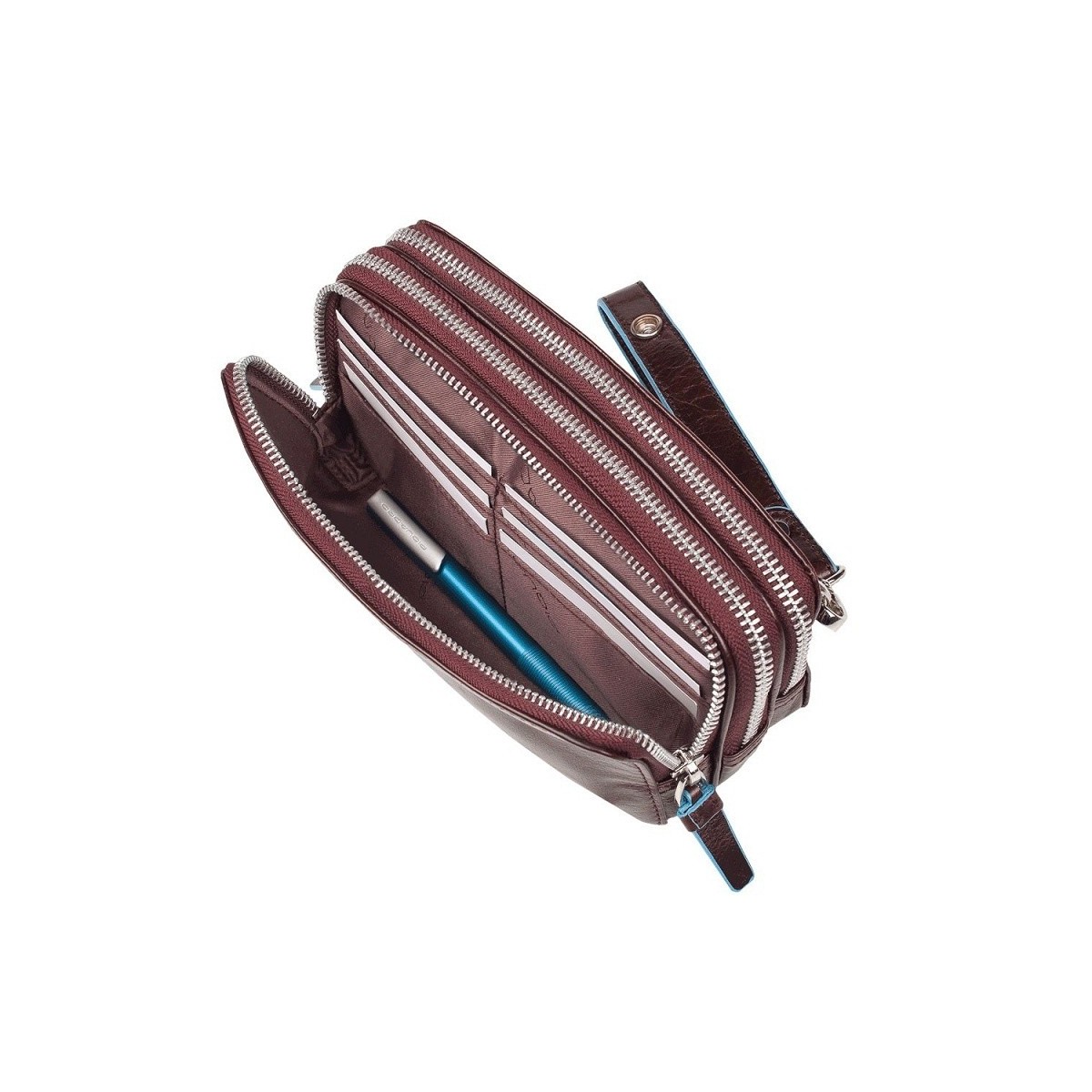 Blue Square Collection case in dark brown leather with 3 zipped compartments