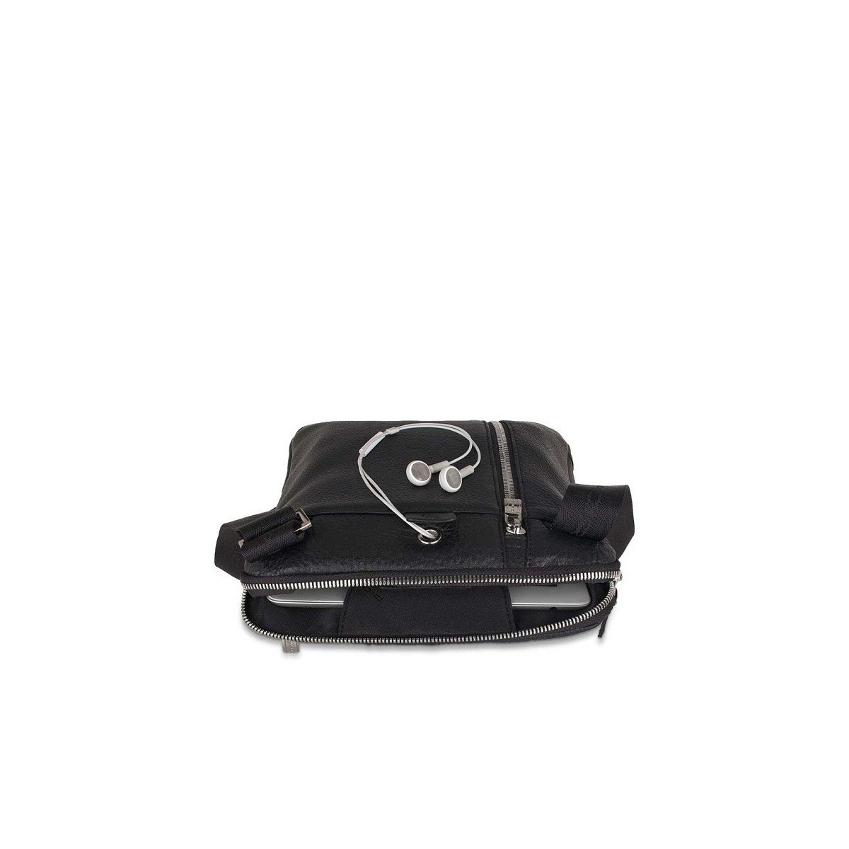 IPad bag double front pocket, pocket for mp3 player and loop for earphones Modus line in blue leather with extendable shoulder strap
