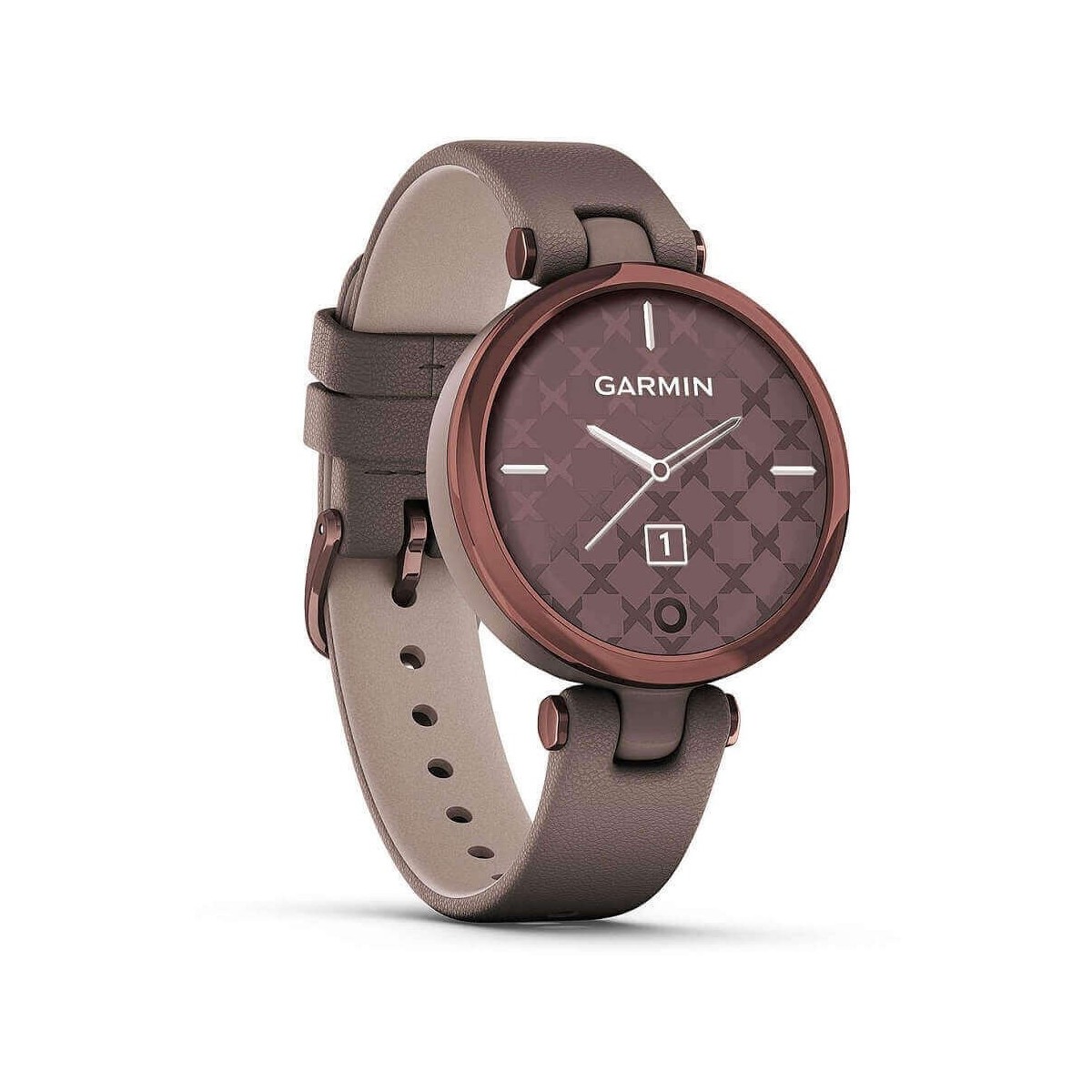 Lily is a small and stylish Smartwach that allows you to track your health stats, view texts, calls and calendar reminders right on the display. It has a stylized patterned dial with a touchscreen display.