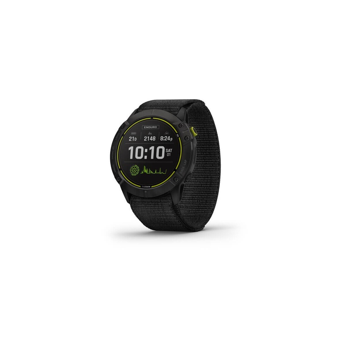 Enduro Carbon Gray DLC Titanium watch with UltraFit black nylon strap is designed for extreme endurance athletes.