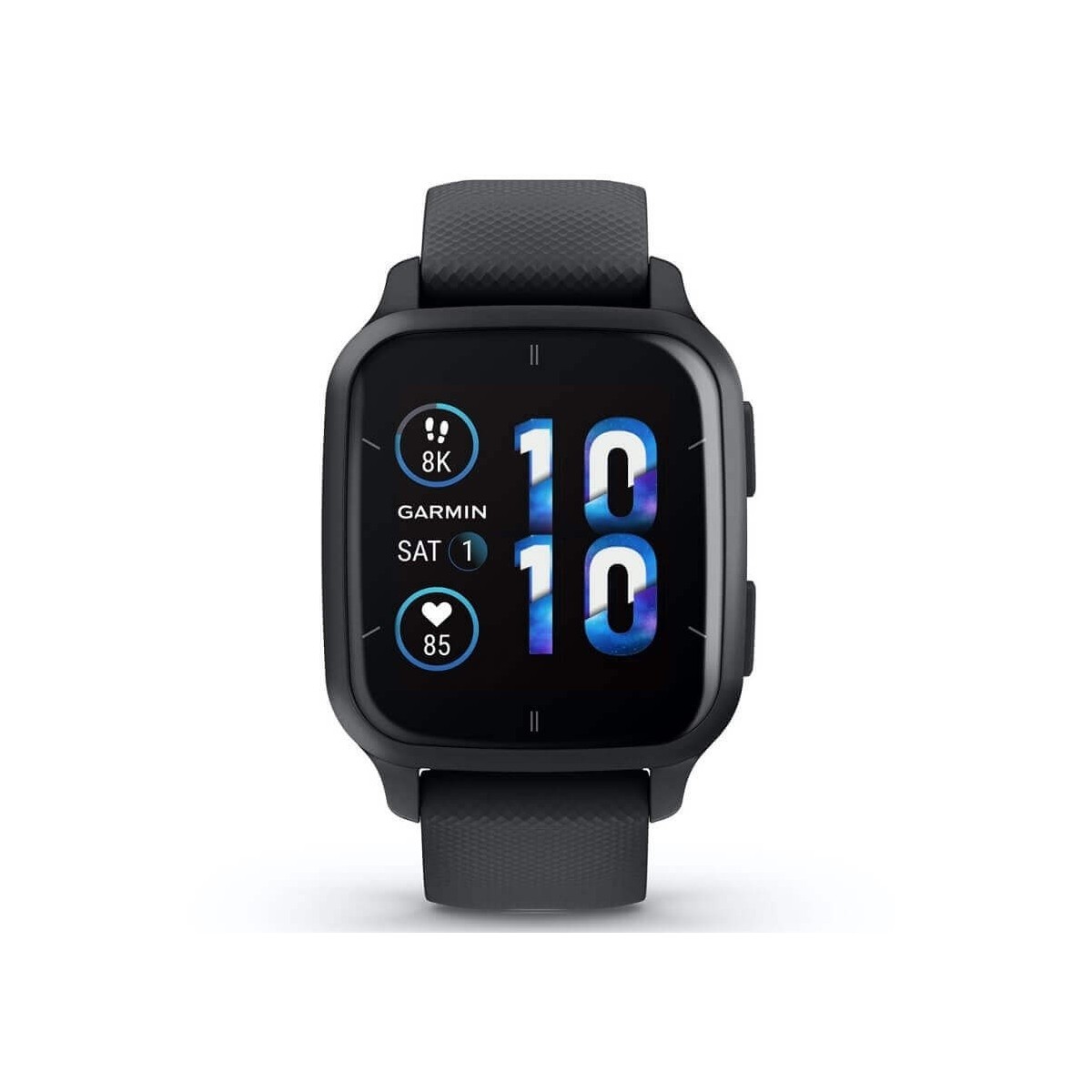 Venu SQ 2 Music Bezel Slate smartwatch with black case and strap, with advanced functions for health, music and with the convenience of making and receiving calls.
