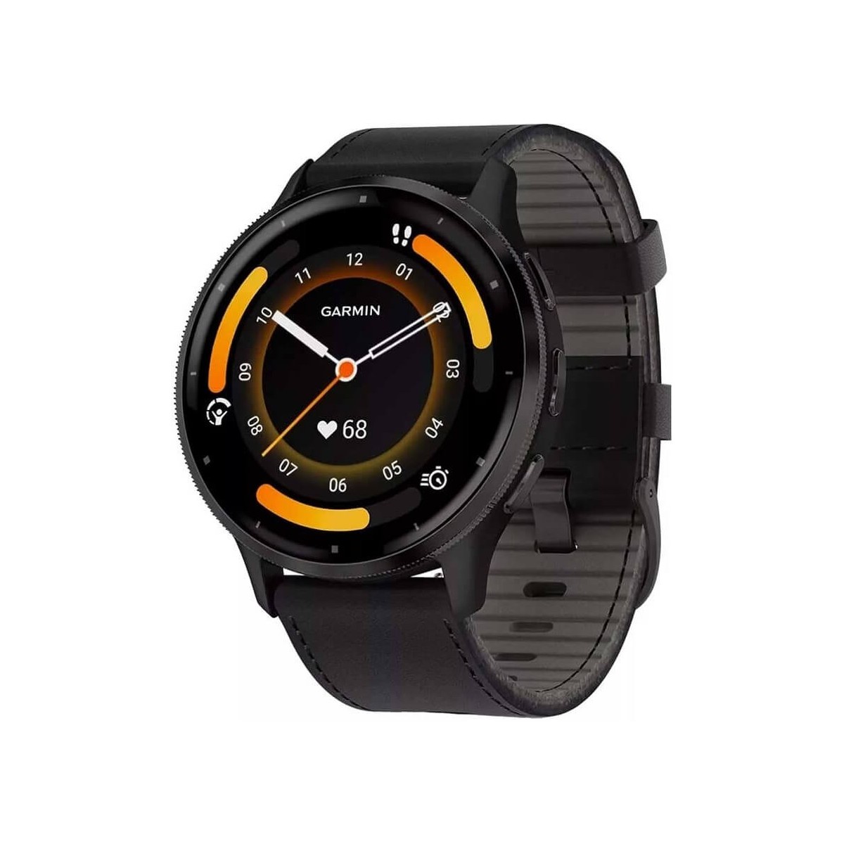 Garmin Venu 3 Black&Slate watch with 45 mm case in fibre-reinforced resin and the possibility to choose between two types of strap, one in leather and the other in silicone, both black in colour. Bright color LCD screen, with up to 14 days of battery life, with advanced health and fitness monitoring functions that allow you to better understand what is happening in your body, and with the convenience of making and receiving calls.