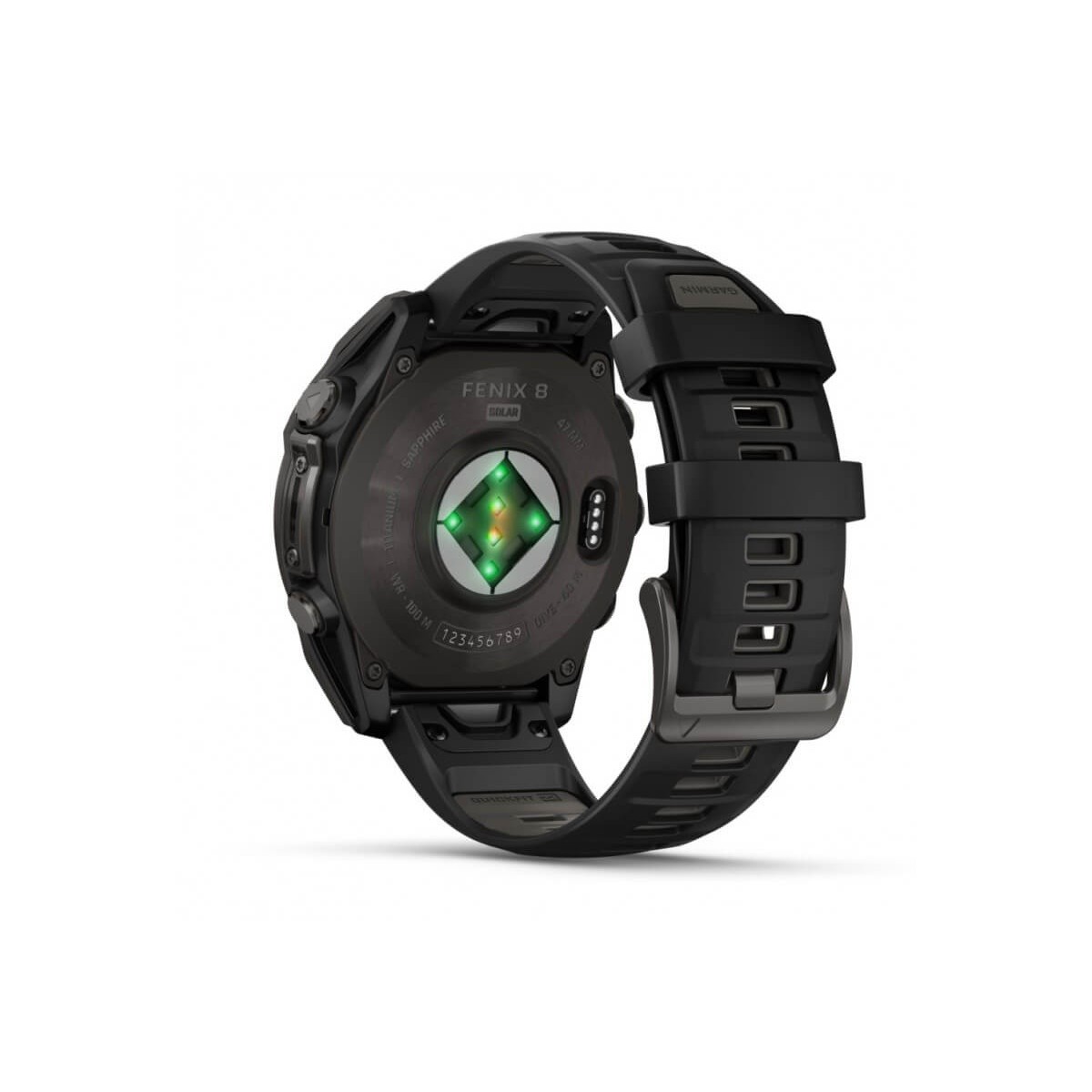 Fenix 8 Solar Multifunction Smartwatch with Sapphire Lens. Black Rubber Strap and 47mm Black Titanium Case.
