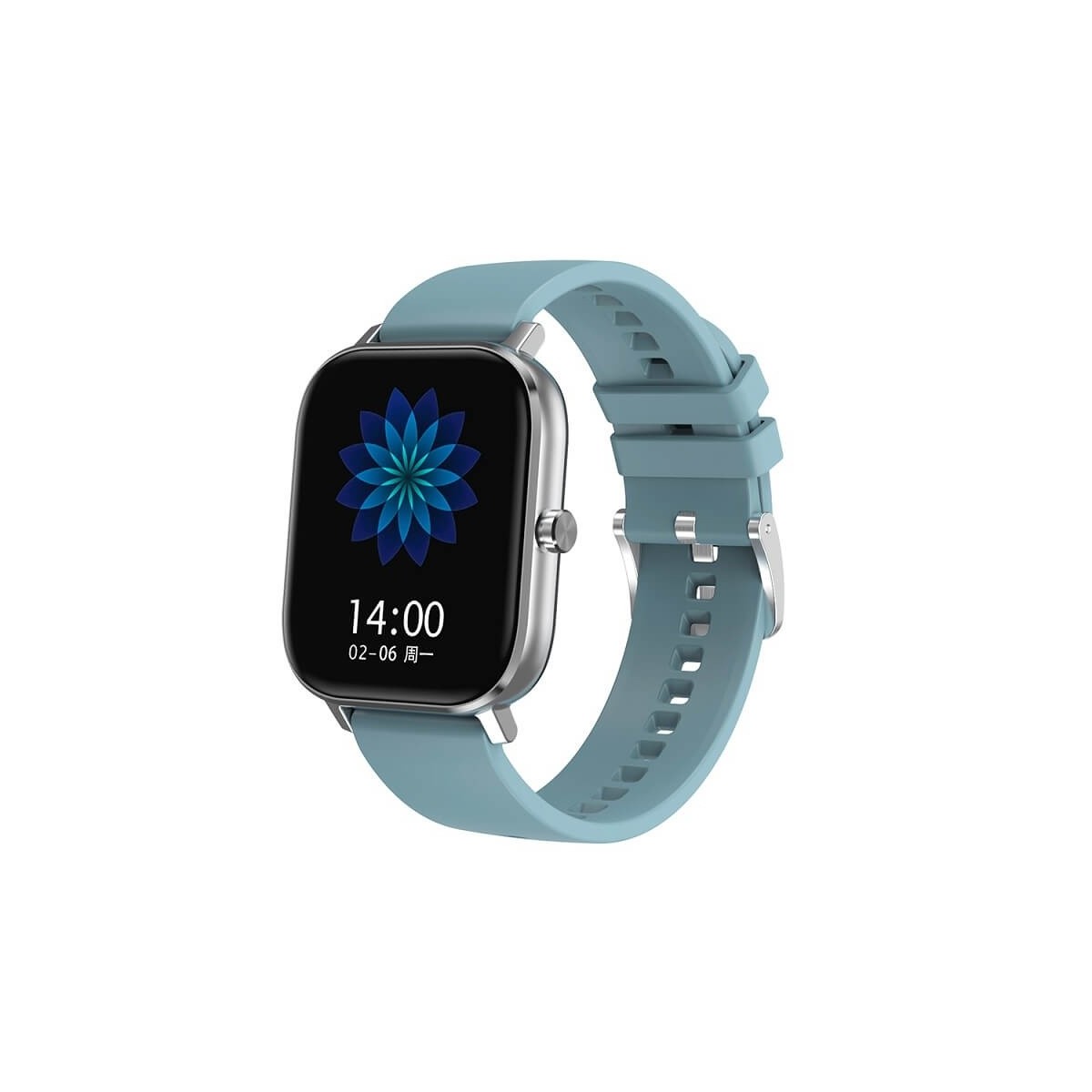 Unisex smartwatch with silver steel case and light blue silicone strap. Bluetooth music, pulse oximeter and heart rate monitor - TCDT35plus0299