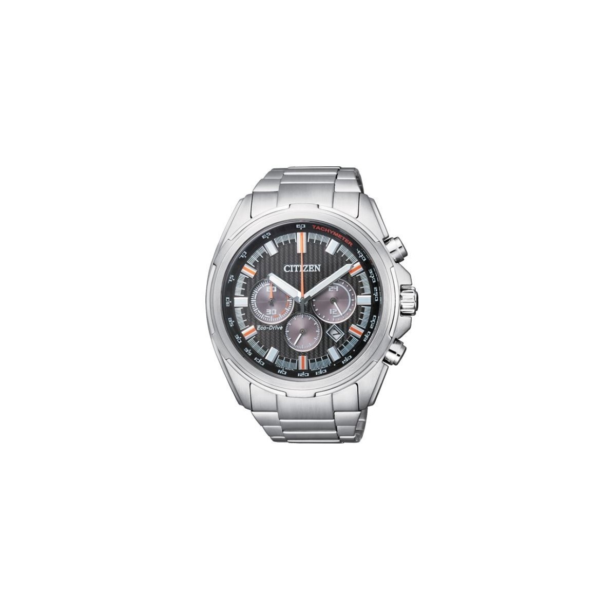 Men's watch Citizen Chrono system with eco-drive case and bracelet, black dial and chronograph