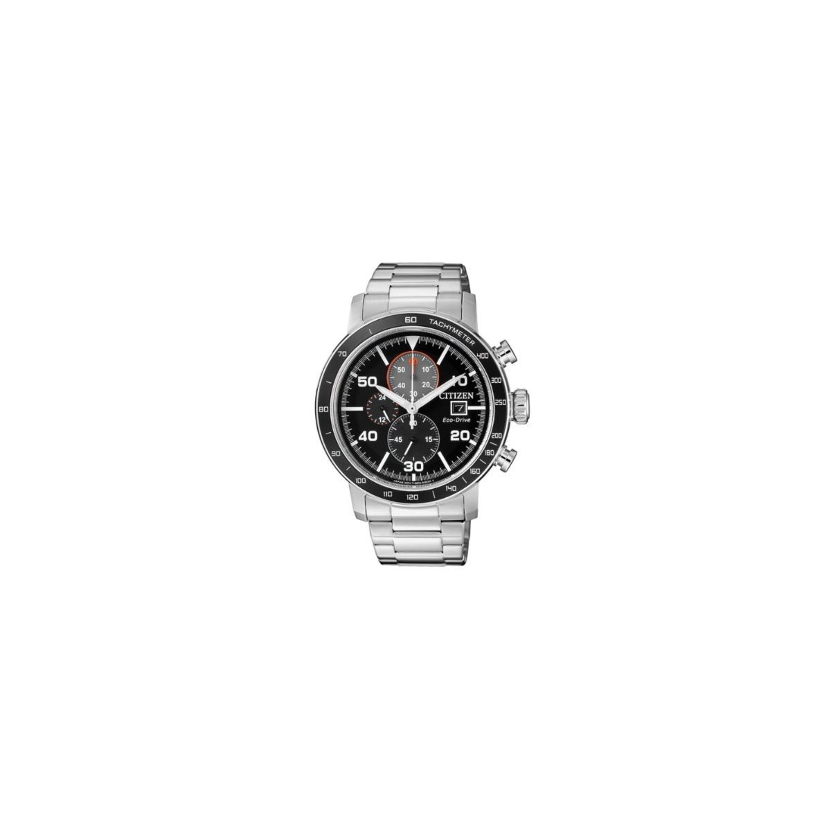 Crono0640 men's watch with stainless steel bottom screw, stainless steel bracelet, movement Eco Drive at full of light with 270 days, reserve black dial and 1/5 sec chronograph movement. up to 60 minutes.