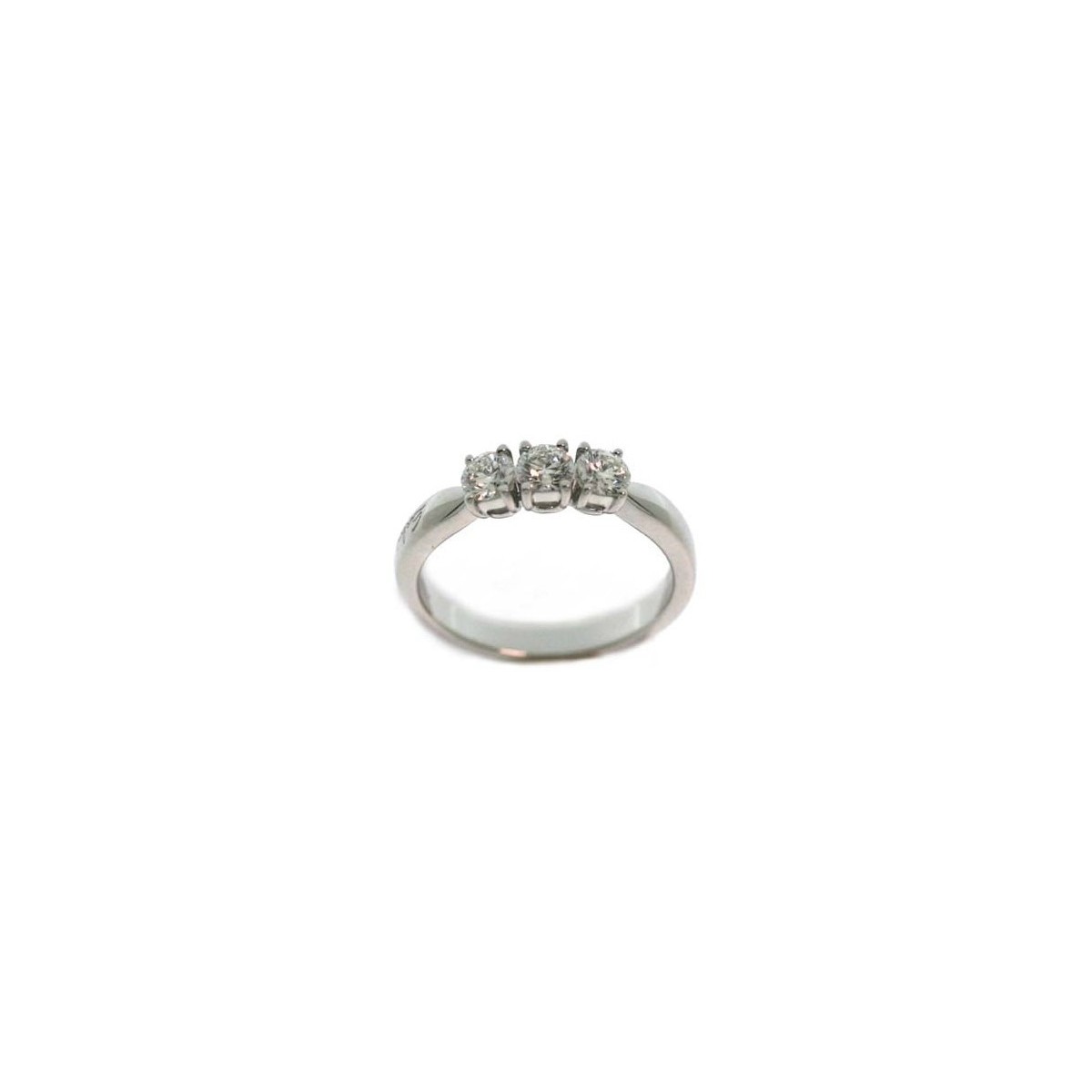 Trilogy ring from the Place Vendome collection made of rhodium-plated 18kt white gold and 3 natural brilliant-cut diamonds of 0.25 carats each for a total of 0.75 carats.