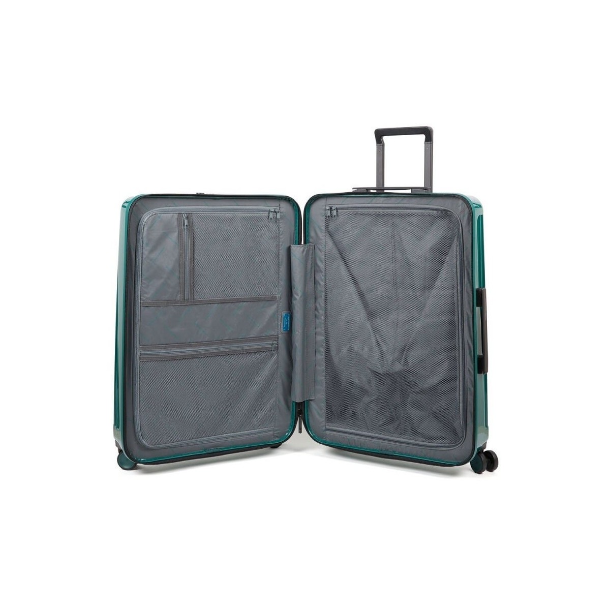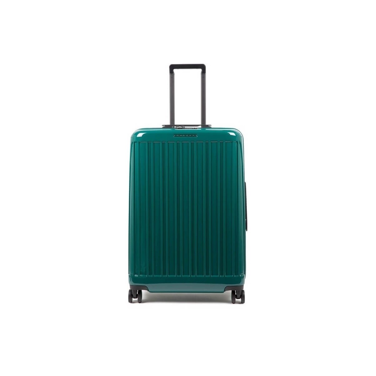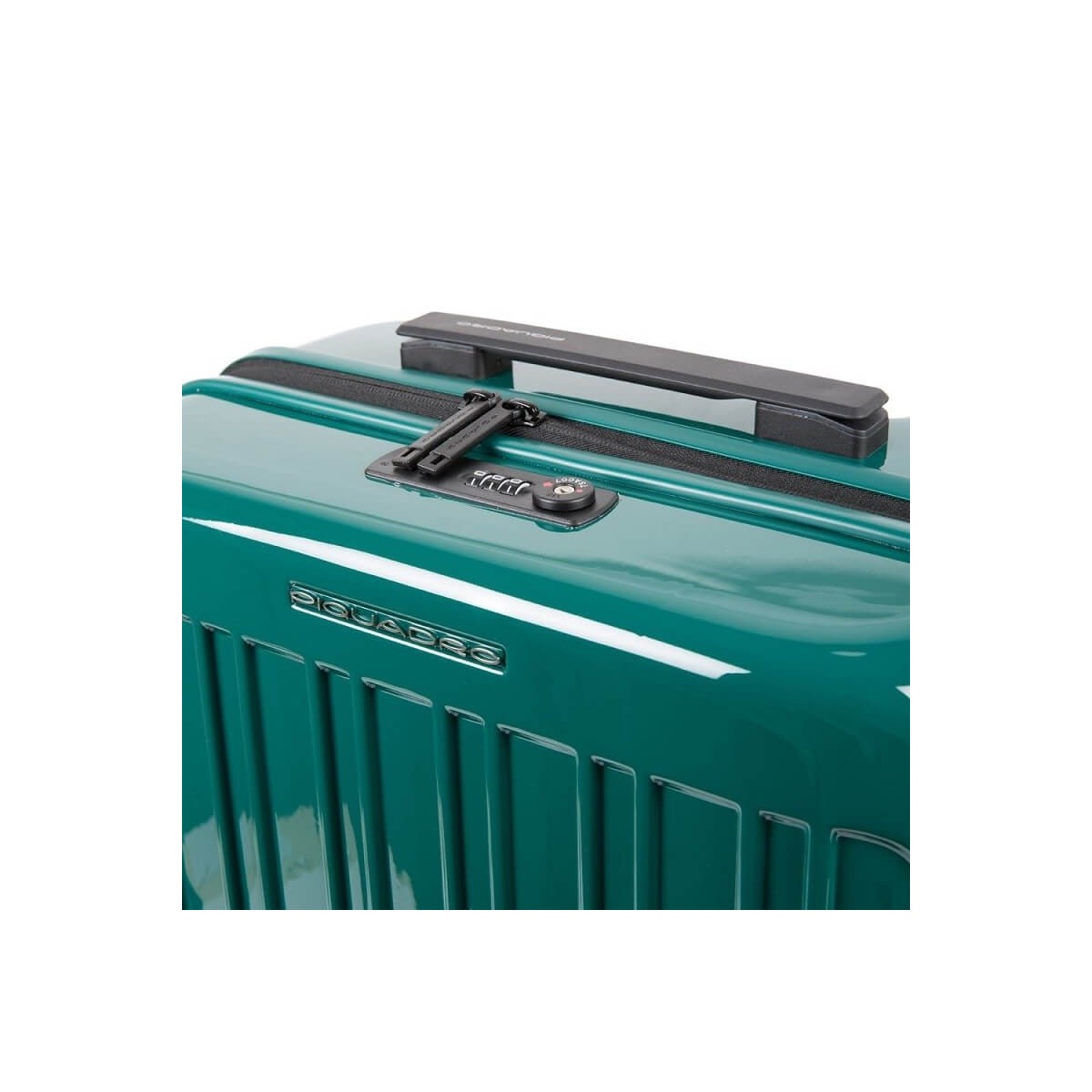 PIQUADRO Medium rigid four-wheeled trolley from the Seeker collection in glossy green polycarbonate.