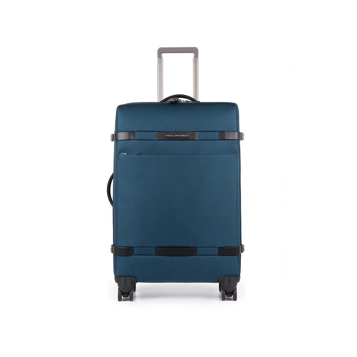 Medium upright large line Move 2 in fabric and leather with four swivel castors, CONNEQU smartphone connection system, TSA and garment bag-blue