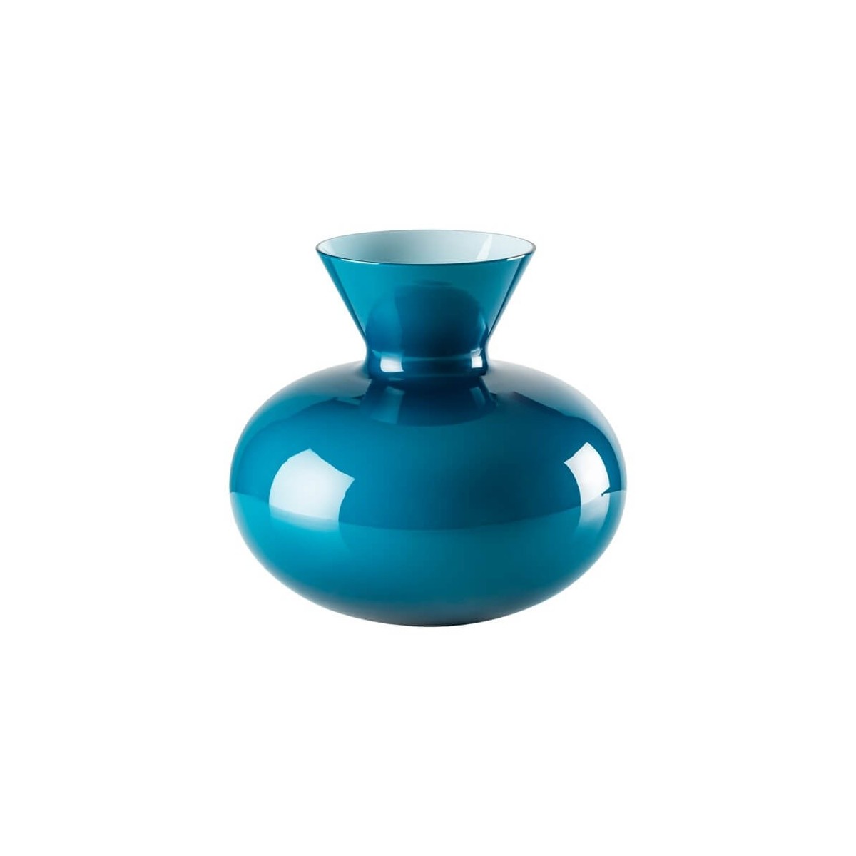 Medium Murano glass vase Idria line in hand-blown glass in horizon blue color with milky interior.