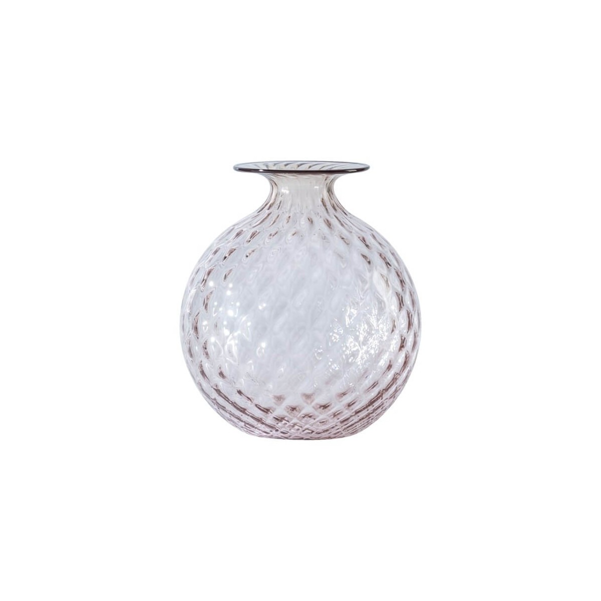 Small Monofiore Balloton Murano glass vase with balloton processing. Pink color with red thread