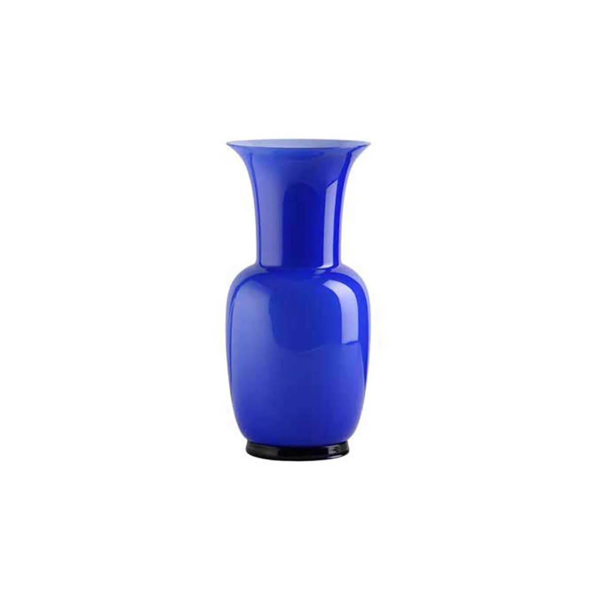 Medium opaline vase in sapphire blue hand-blown Murano glass.