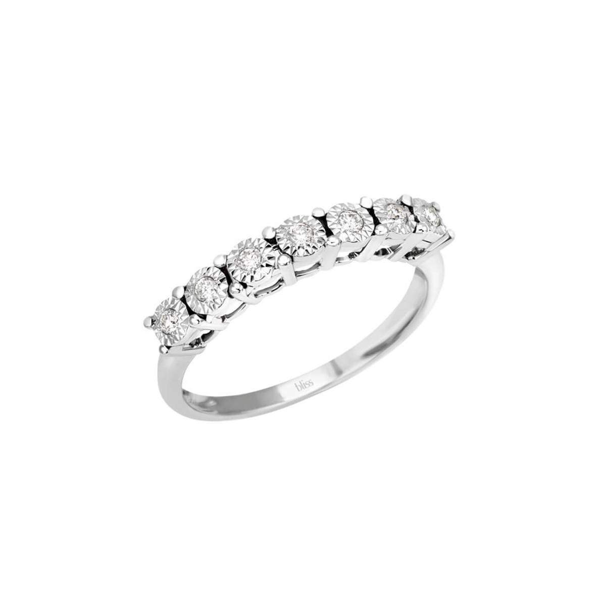 Bliss 7-stone band, Rugiada line, in 18k white gold and 0.12 carat brilliant-cut natural diamond. Size 13