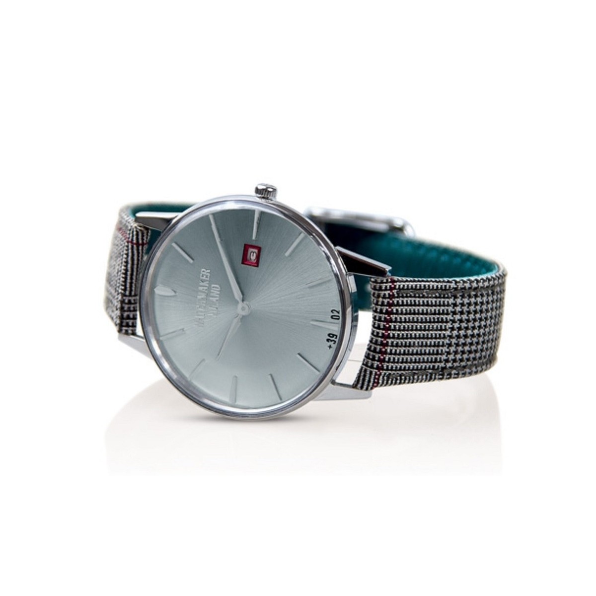 Watchmaker Milano line Ambrogio Vintage watch with silver dial, leather and fabric Prince of Wales gray color strap and quartz movement with dater