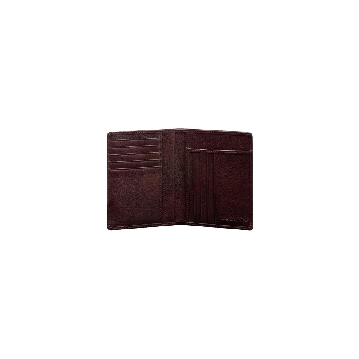 Piquadro men's wallet, from the Vibe collection, made of genuine dark brown leather, coin purse and with credit card slots distributed on both sides.