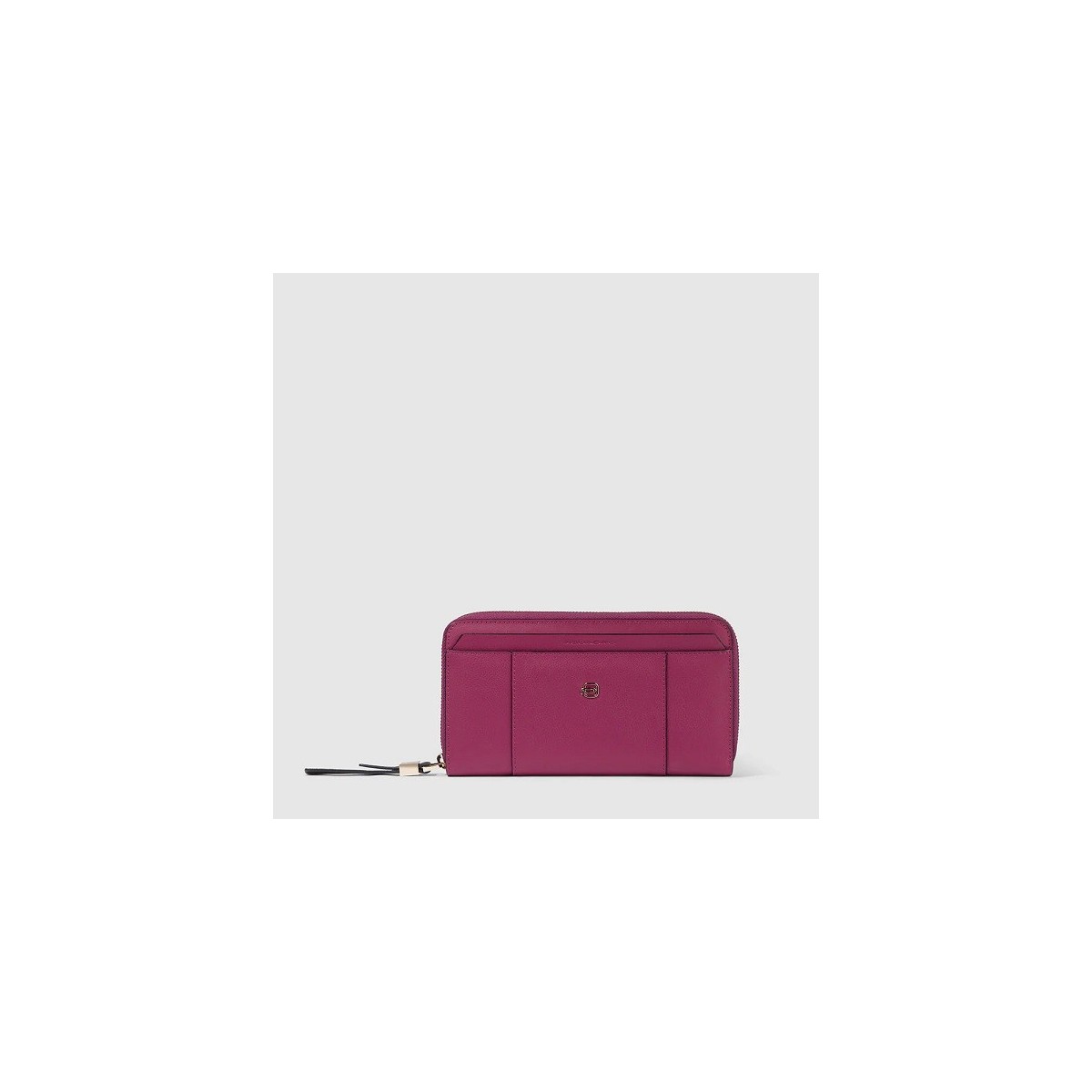 Piquadro women's wallet, from the Circle collection, made of genuine fuchsia leather, with four gussets with zip, coin holder, credit card holder and RFID anti-fraud protection.