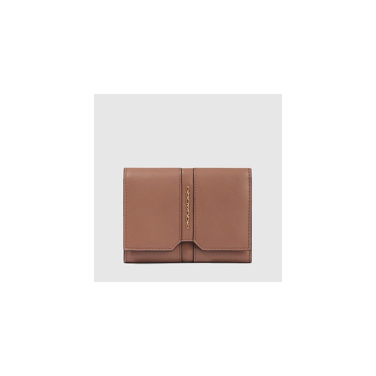 Piquadro women's wallet, from the Ray collection, made of genuine orange leather, with 6 card slots, coin holder with zip closure, RFID anti-fraud with button closure.