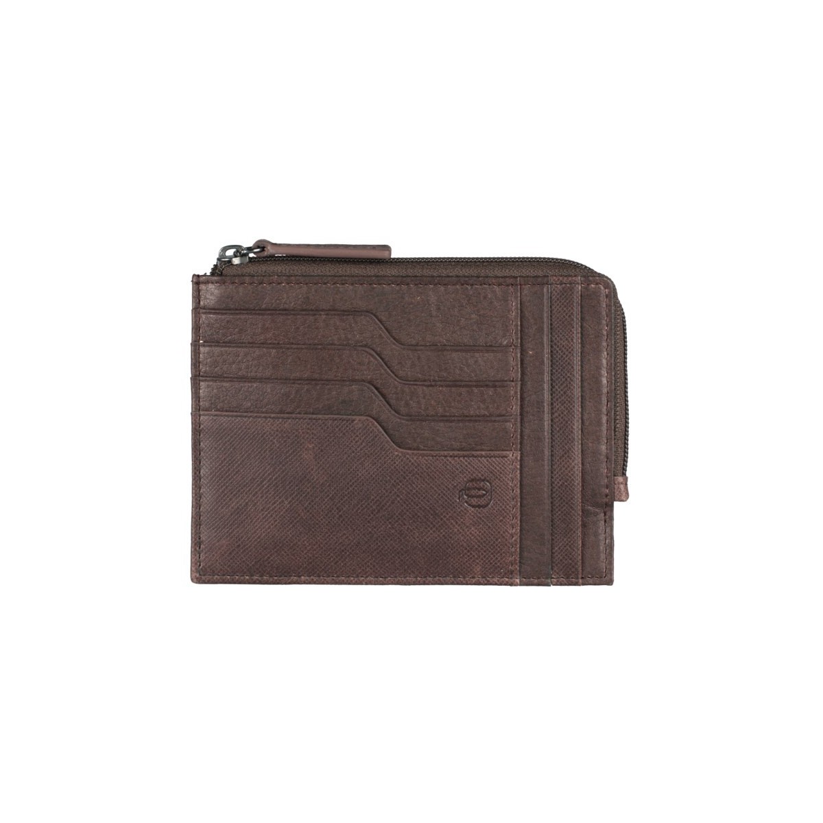 Leather zipper coin pouch with document holder and credit card slots Euclide