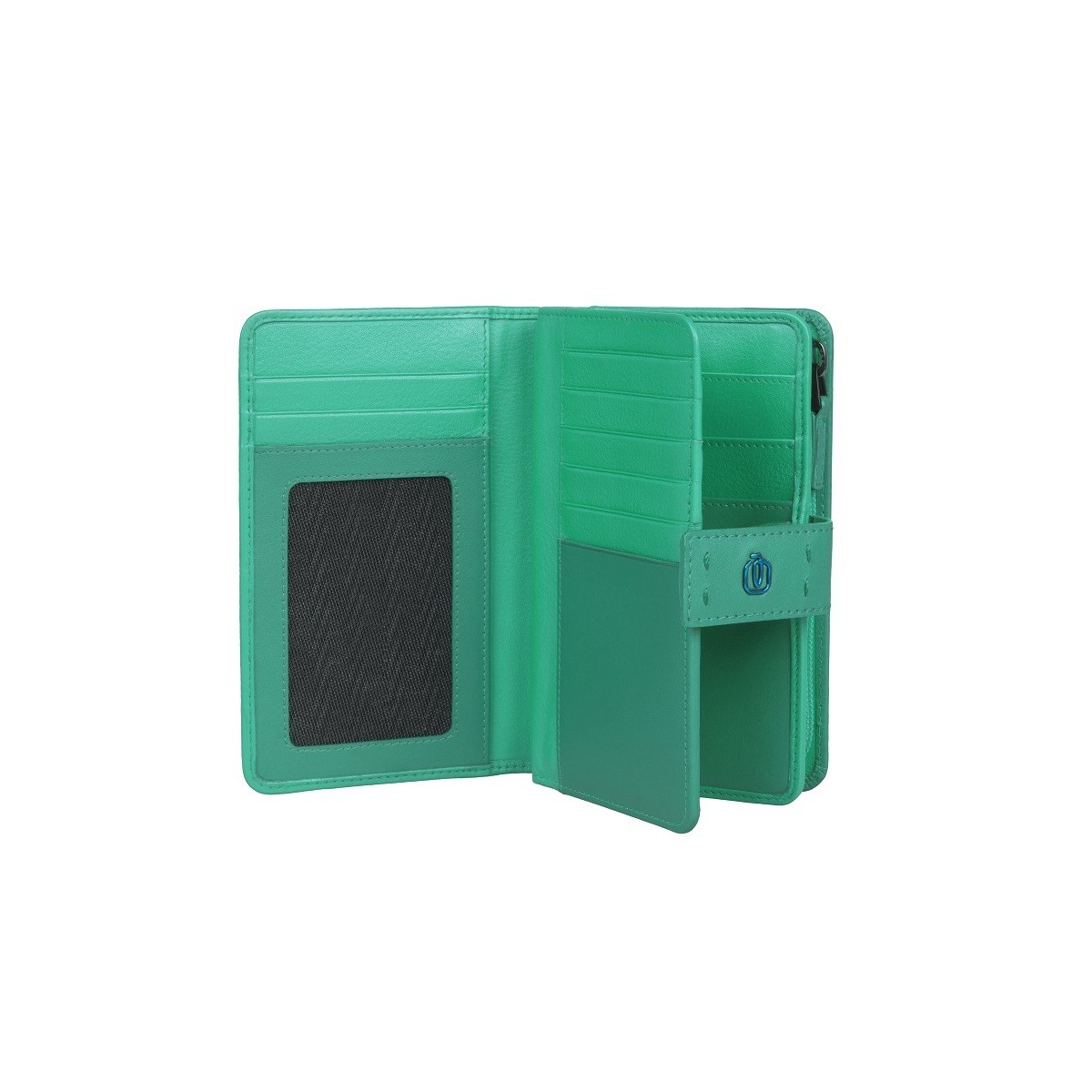 Women's leather wallet with coin pocket and credit card slots Pulse green color