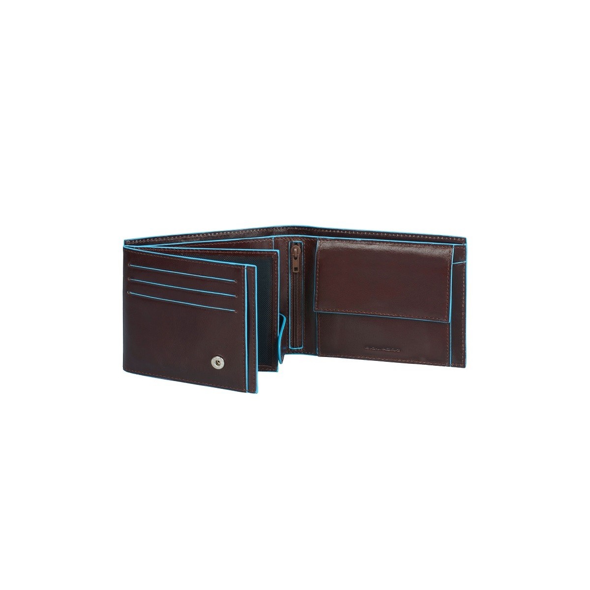 Men’s wallet with coin pocket,credit card slots and double ID window Blue Square mahogany color