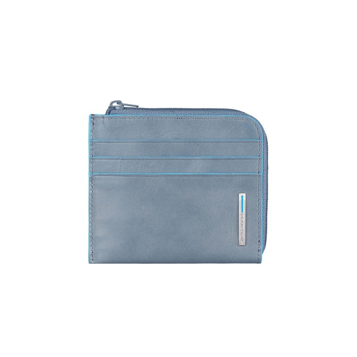 Leather zipper coin pouch with credit card slots Blue Square gray color