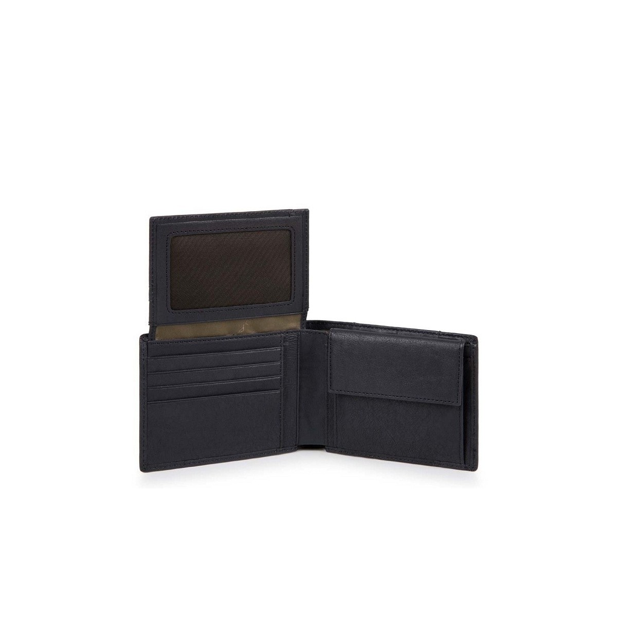 Blue with document holder, coin purse, credit card holder and RFID anti-fraud. The Brief line is made of vegetable-tanned full-grain calfskin with a non-homogeneous look due to the hand-made washing process, combined with a water-resistant technical fabric. All models have design metal accessories with a double gunmetal finish and a brushed metal insert, marked Piquadro.