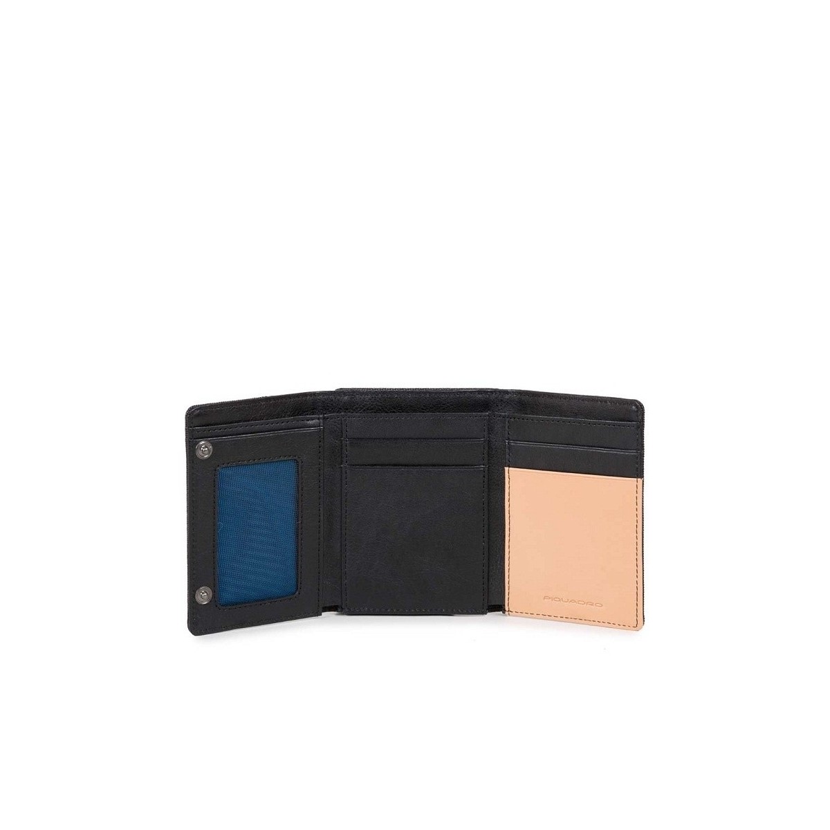 Black with a window for documents and credit card slots. The Blade line is characterized by its ultra light articles, created with particular combinations of colors and materials that give the line an informal and dynamic style. The technical anti-tear fabric is combined with two types of leather, a full-grain calf leather tanned with vegetable and a vegetable-tanned smooth leather surface. These different types of leather create the details that characterize it.