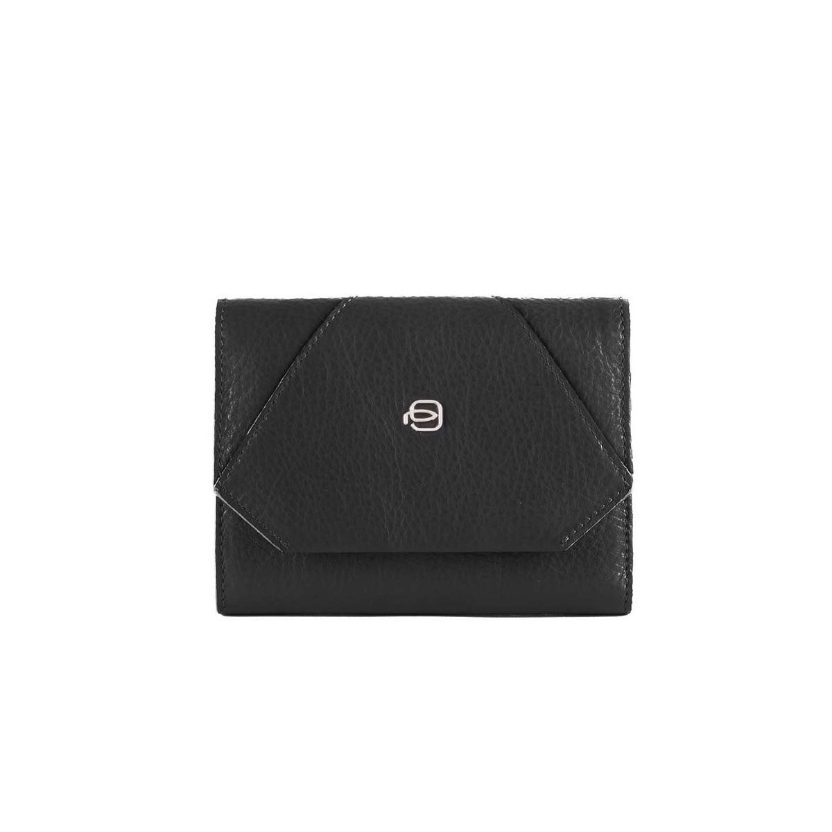 - Medium woman wallet with coin purse, credit card holder and RFID anti-fraud protection of the Muse line in black leather. The Muse collection consists of exclusively feminine bags and accessories with metallic details with a glossy finish.