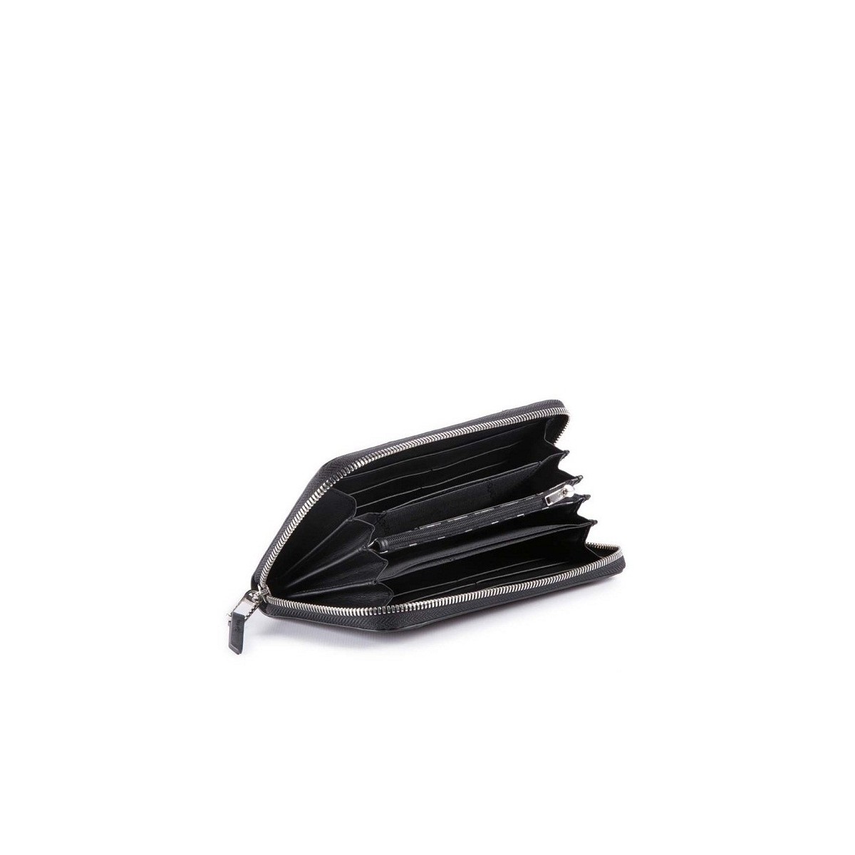 - Ladies wallet 4 bellows closed by zip with coin purse, credit card holder, RFID anti-fraud of the Muse line in black leather with studs. The Muse collection consists of exclusively feminine bags and accessories with metallic details with a glossy finish.