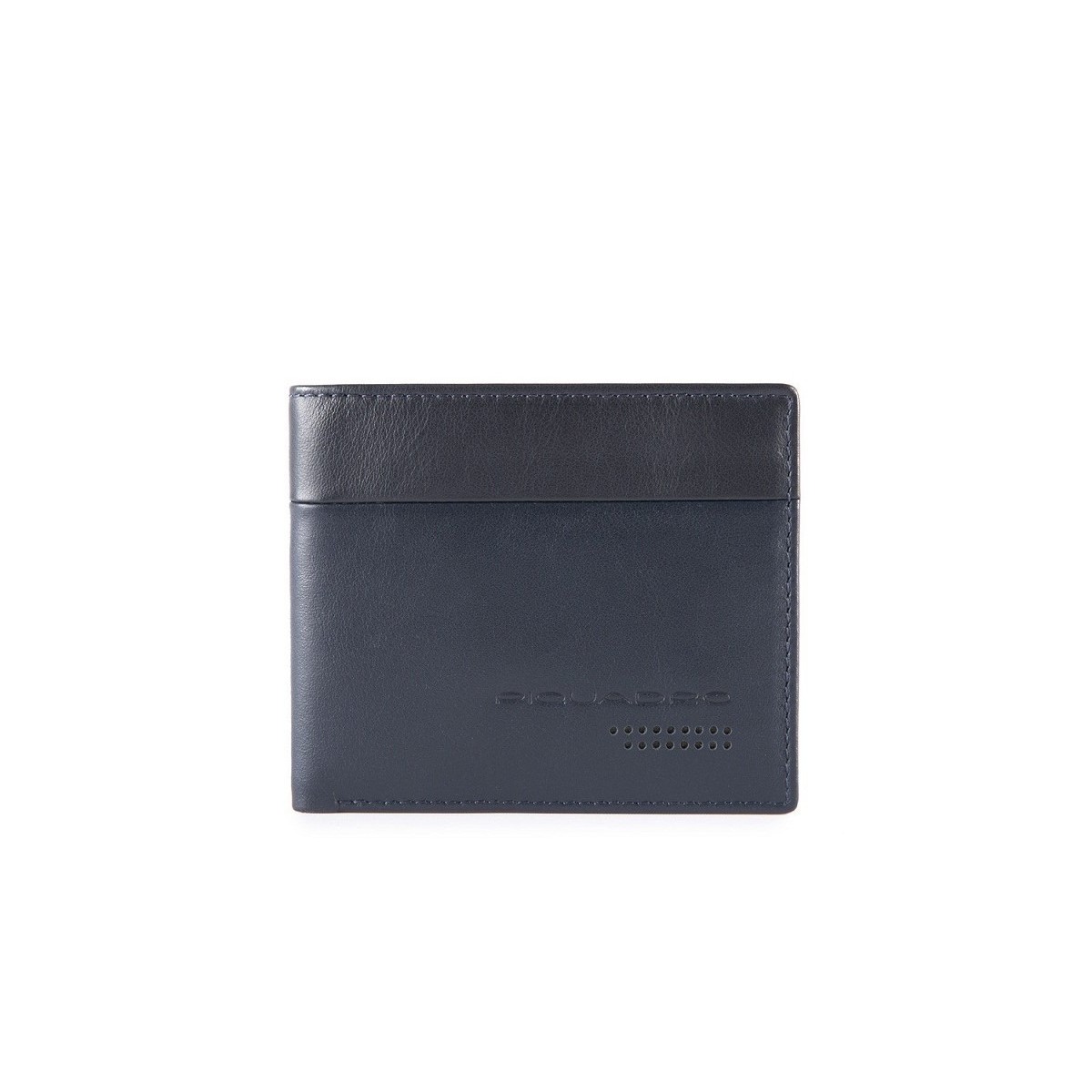 Slim men's wallet with coin purse with zip closure from the Urban collection in blue leather. The Urban collection is made of calfskin with a natural grain and a soft touch, dyed so that the whole selection is homogeneous and the metallic finishes are gunmetal-colored to make the whole line even more attractive.