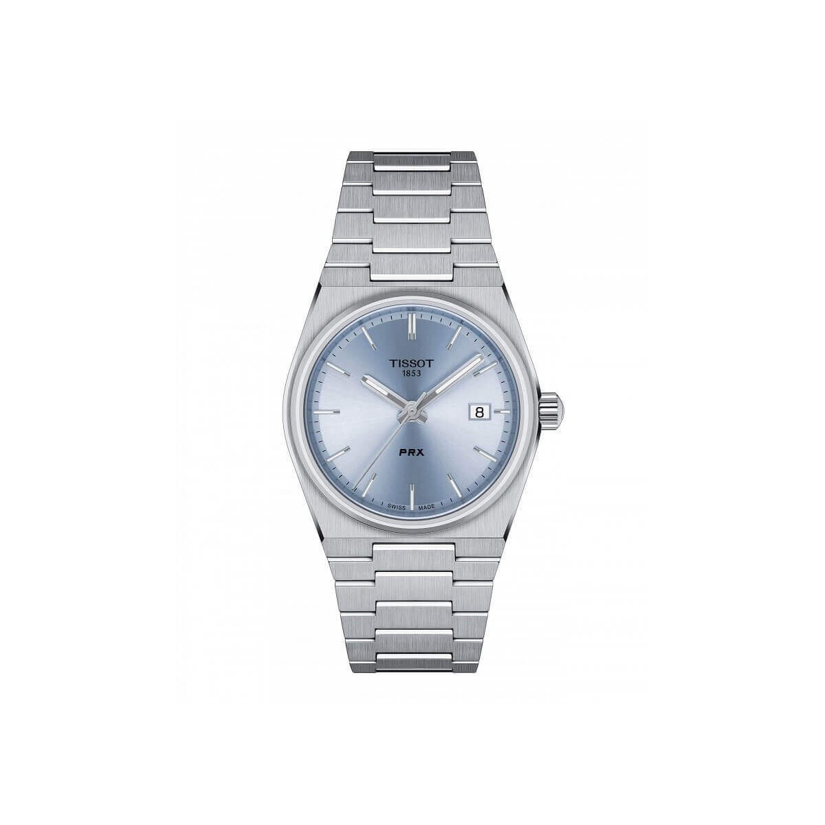 Prx unisex watch with quartz time only function, with steel case and bracelet, 35 mm case and light blue dial. Butterfly clasp with buttons.