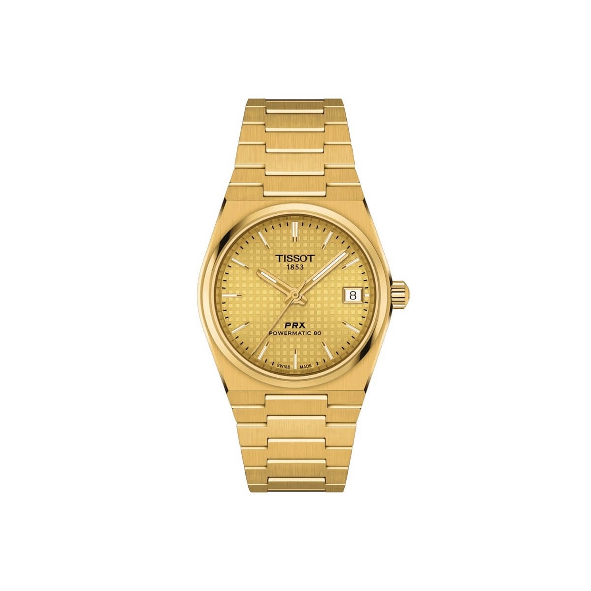 PRX line T-Classic collection watch with Powermatic 80 automatic movement. 35 mm gold-plated steel bracelet and case.