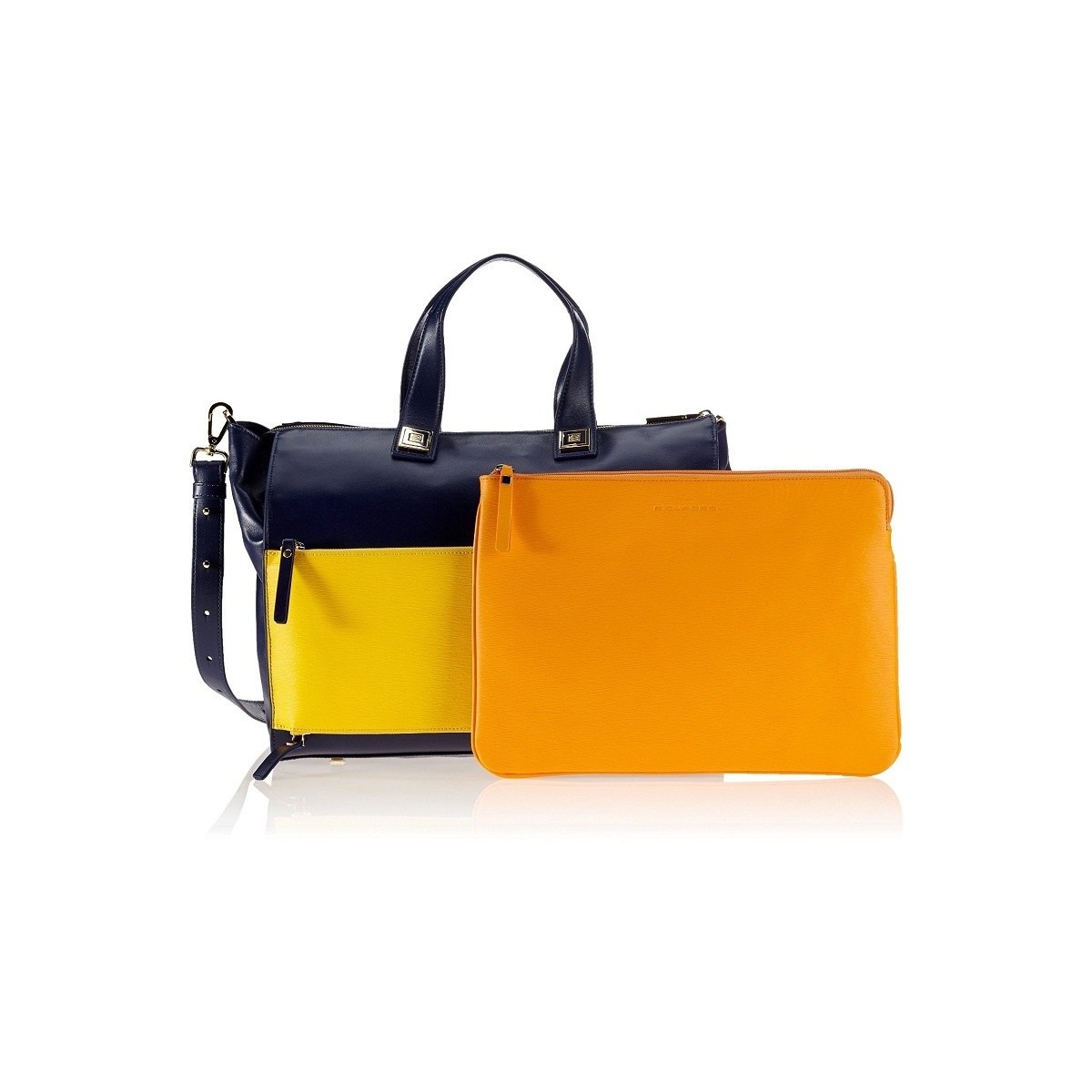 Double handle bag with removable notebook sleeve and umbrella pocket line Aurea color night blue