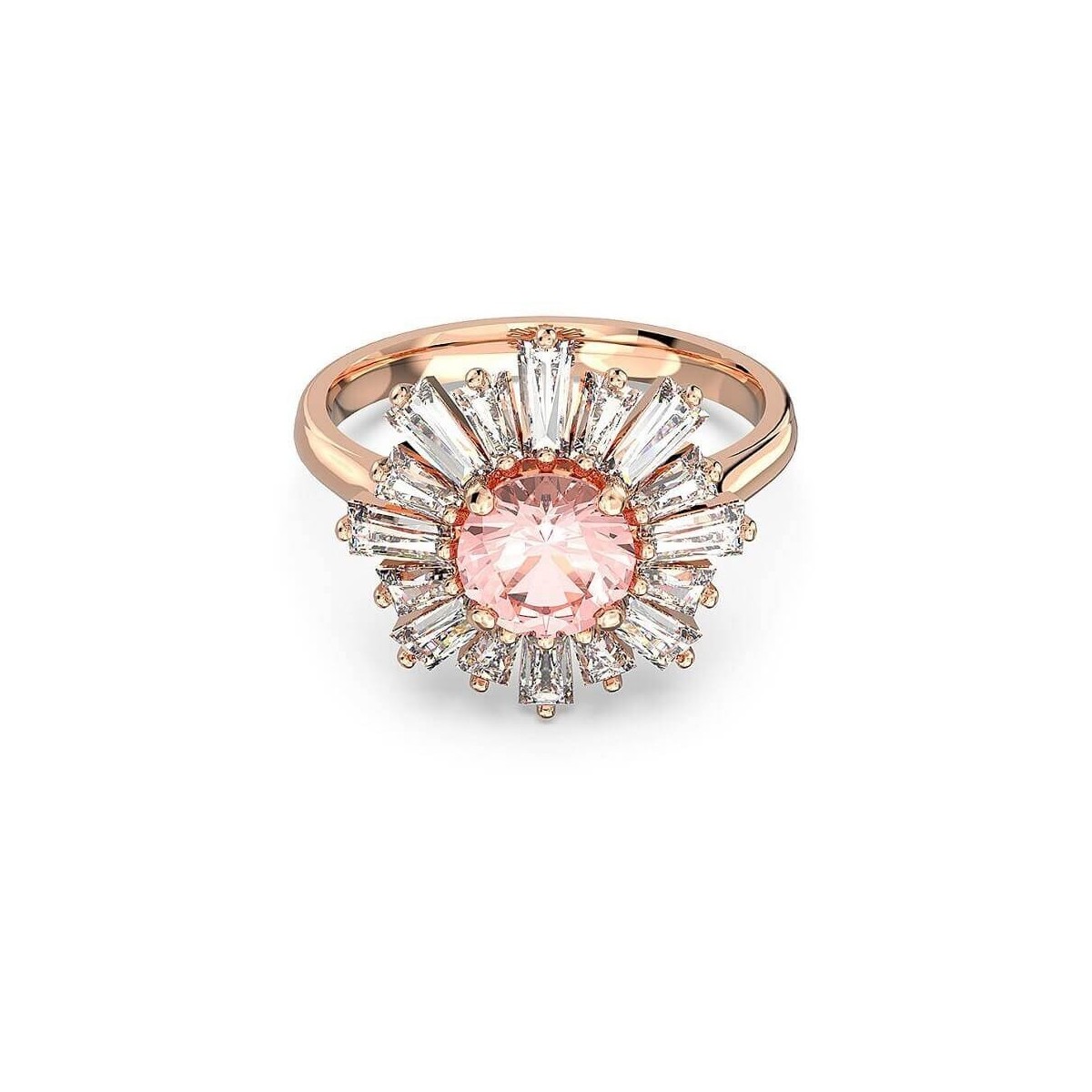 Si ispira alla primavera la nuova collezione di Swarovski, Sunshine, che propone questo elegantissimo anello realizzato in metallo placcato oro rosa con cristallo centrale rosa incorniciato da piccoli raggi bianchi.