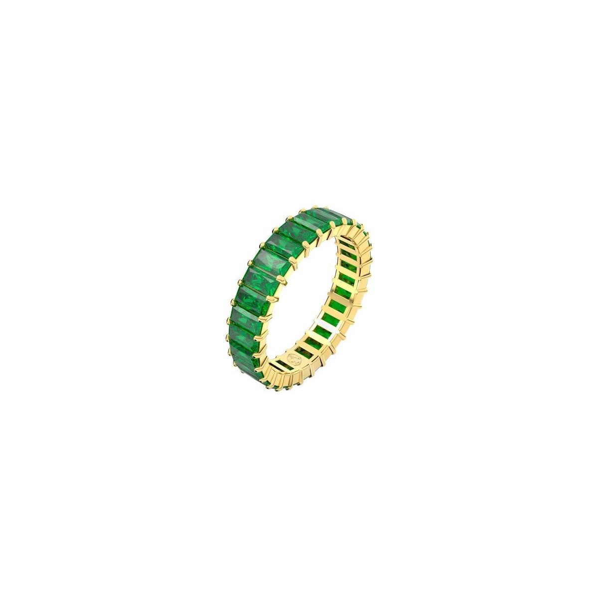 Anello da donna Swarovski, della collezione Matrix, realizzato con montatura placcata color oro giallo ed impreziosita da zirconi verdi taglio baguette.