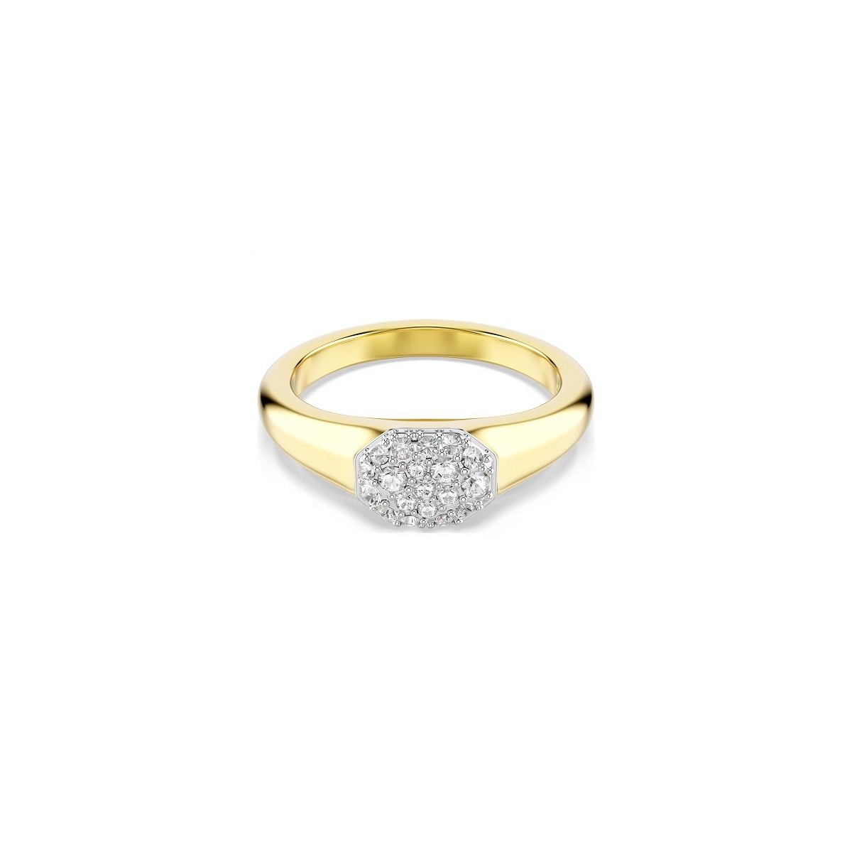 Anello da donna Swarovski, della collezione Dextera, realizzata con fascia placcata in tonalità oro, cristalli bianchi rotondi di varie dimensioni, incastonati in una formazione ottagonale utilizzando la tecnica Radio Flash di Swarovski.